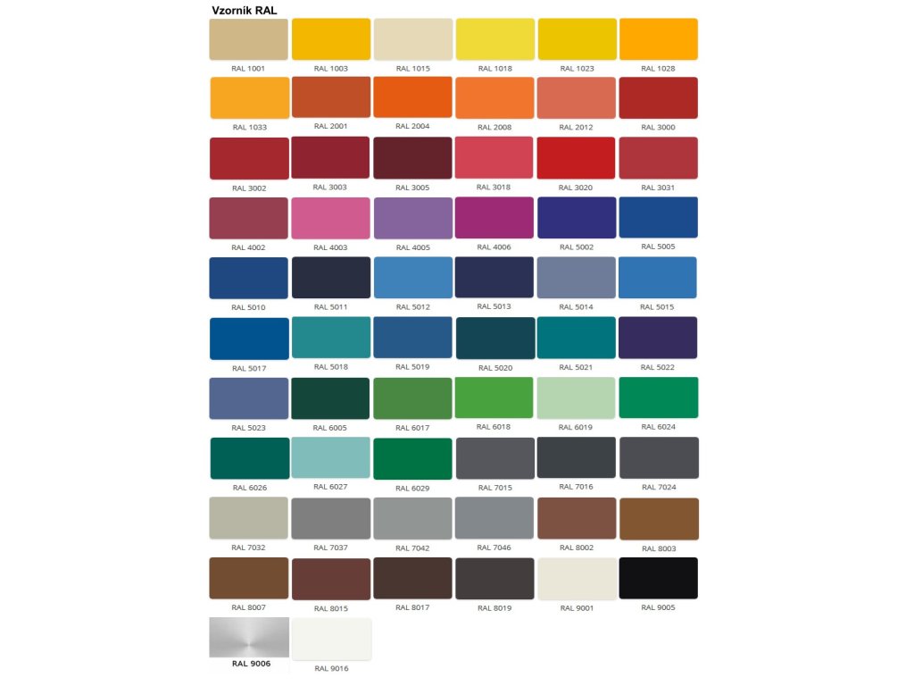 - kovová konstrukce možná zvolit z odstínů RAL - vzorník